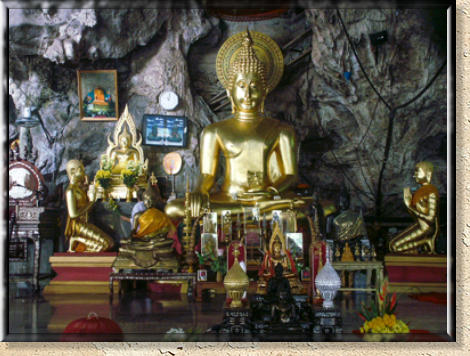 Fußabdruck Buddhas führt. Auf 290 Meter Höhe haben wir einen herrlichen Ausblick auf das Tal und die Inselwelt von Krabi. Außerdem