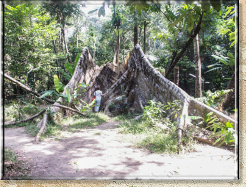 Die zwei größten Bäume in diesem kleinen Dschungelwald tragen zu Recht den Namen „ die Tausendjährigen Bäume“. Unvorstellbar große