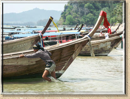 ihm wohnen. Der Ao Nang Strand ist voll von Massentourismus, da dieser Ort zum Pauschalreiseziel geworden ist. Viele Longtailboote in