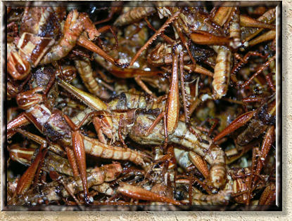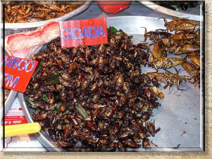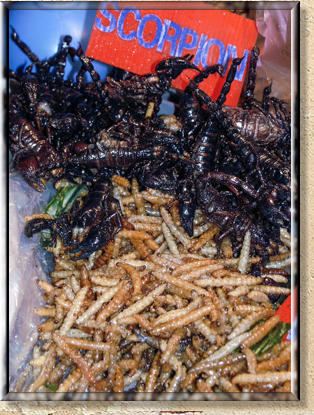 Angebotskette reicht von exotischen Fleischspießen, gegrillten Krabbeltierchen, frischem Obst, gegrilltem oder getrocknetem Fisch bis